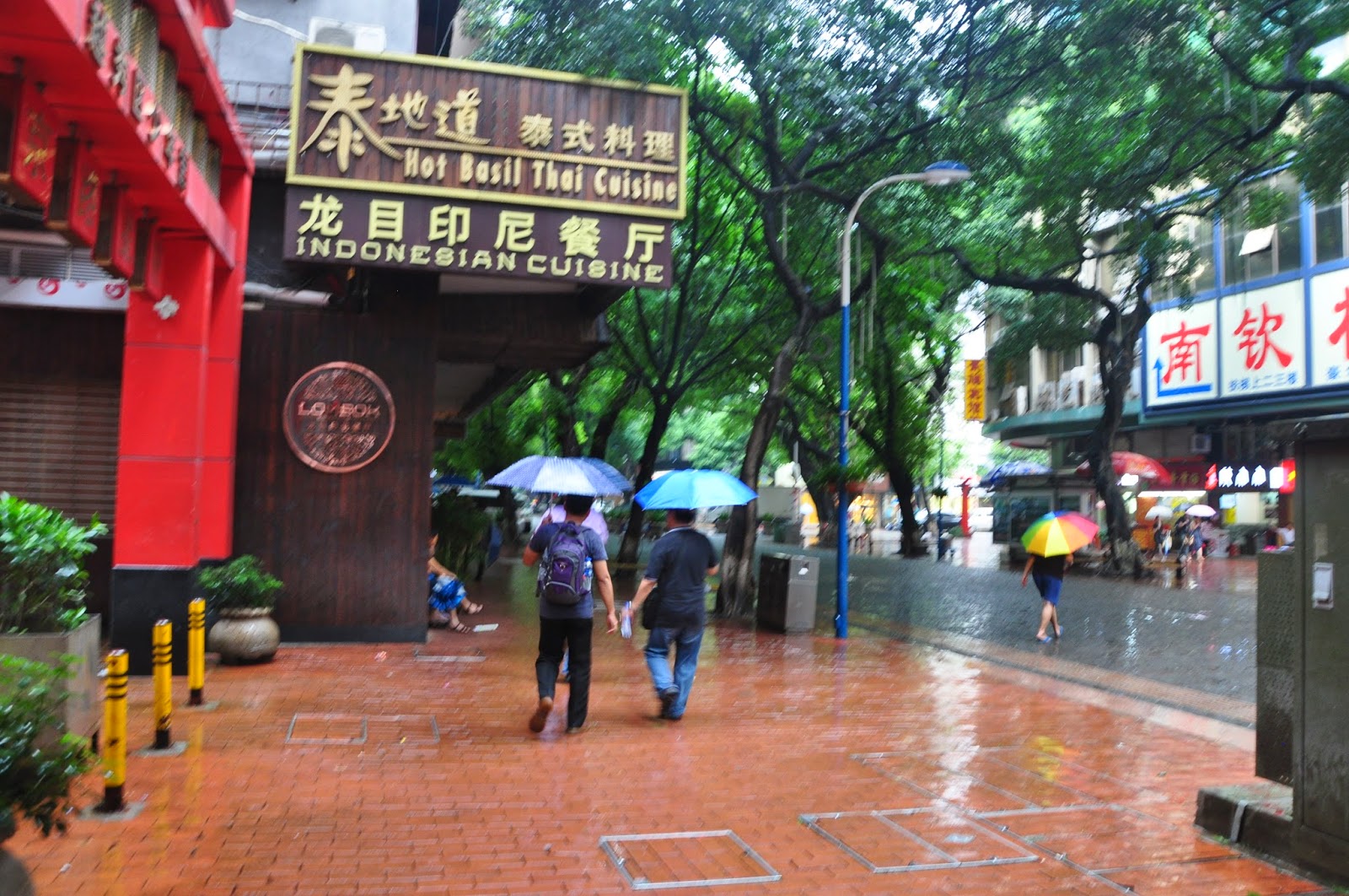 one of our team had visite to ghuangzhou and know a lombok food cuisine in ghuangzhou , so we must walking from station to the place . The problem is when we arrive and get walking ghuangzou had rain seasons so we must walking in the rain and must buying an umbrella for 10-15 year variation in price.